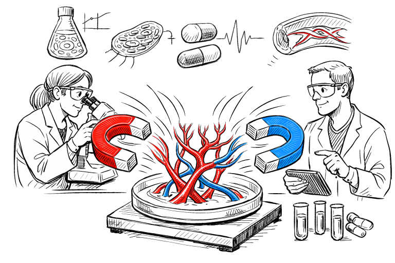 Researchers are utilizing magnetic fields to guide lab-grown blood vessels into precise formations, enhancing drug testing methodologies.
